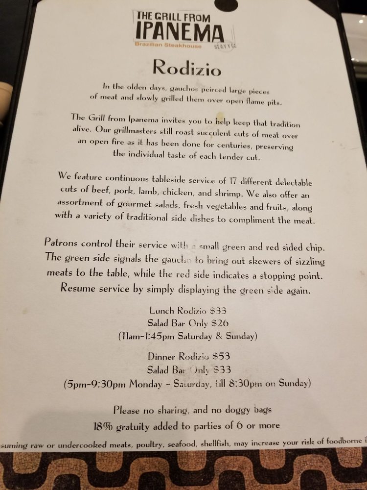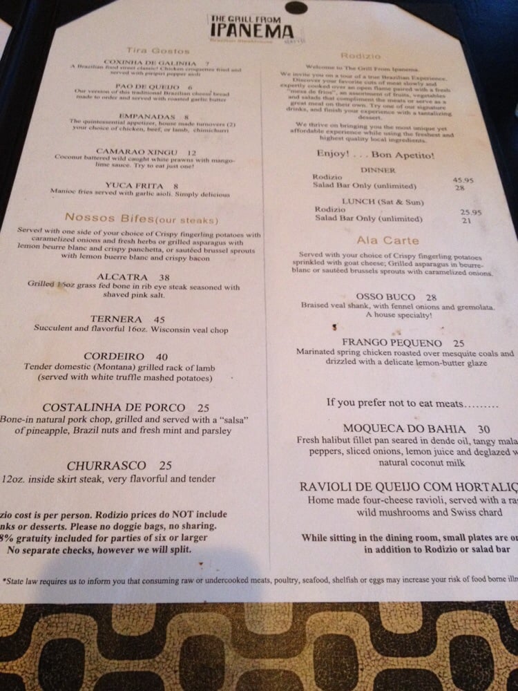 The Grill From Ipanema Menu (Update 2025)